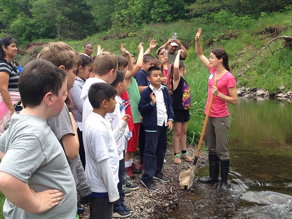 Partner Classrooms go on one fieldtrip in the fall and one in the spring. New Teacher Partners collaborate with the Program Coordinator to identify trip options, create schedules, and reserve buses and programming. With WAC approval, repeat Teacher Partners may coordinate trip logistics and plan schedules independently. Fieldtrip experiences are designed to bring students’ watershed learning to life. They offer an opportunity to meaningfully connect students with NYC’s urban environment; the forested watershed environment that supplies NYC’s drinking water; and each other. On these trips, students may visit each other’s schools, get a first-hand view of a drinking water reservoir, learn about water quality from a boat, study a nearby stream, tour a maple farm, volunteer to help protect forests and water quality, and more.
